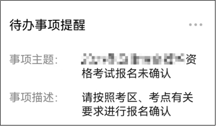 请考生仔细查看“待办事项提醒”的内容,未自动确认的务必按照所在考区、考点要求进行报名确认,未按时完成报名确认的视为主动放弃考试。
