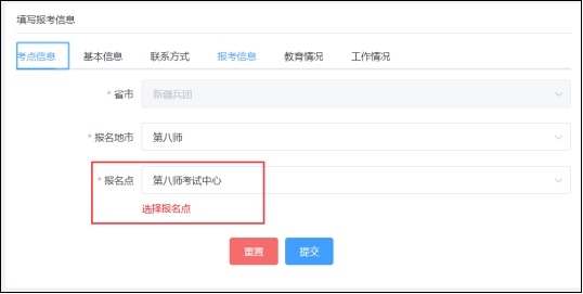 天津、上海、新疆兵团考区采用线上确认方式,考生在填写考点信息时须选择报名点。