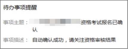 自动确认成功后,微信公众号会发出报名已确认的“待办事项提醒”(如下图),报名信息将不能撤销提交和修改。