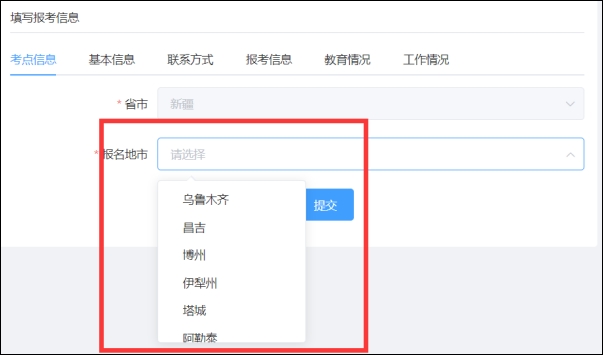如信息填写后发现省份选择有误,请在“未提交报名信息”状态下,使用【修改考区】功能进行修改。