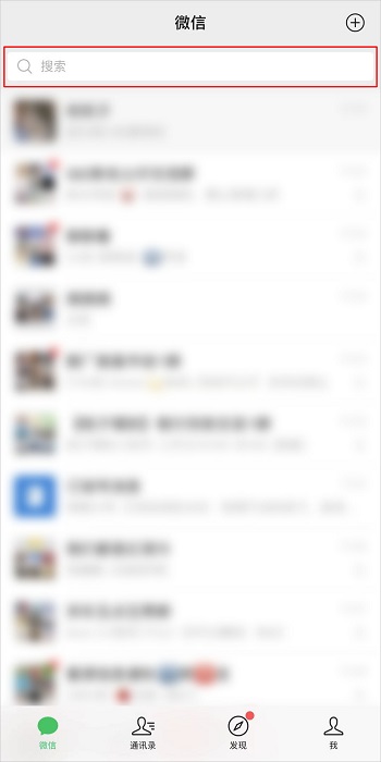 第一步:进入微信主界面,点击上面【搜索框】;