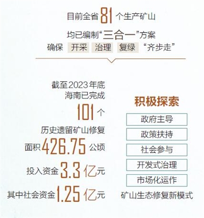 激励与约束并举,集约开发与循环利用并重,如今在海南,越来越多矿山正由“灰”转“绿”生“金”。