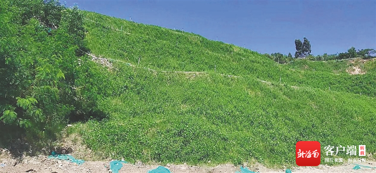 “这些山就是。”海南好德实业有限公司相关负责人冼以鸿说,在连续开山采石7年后,该公司于2019年7月开始对山体进行生态修复,通过削坡减载、挂网喷播、覆土绿化,如今石场几乎与周边环境融为一体。