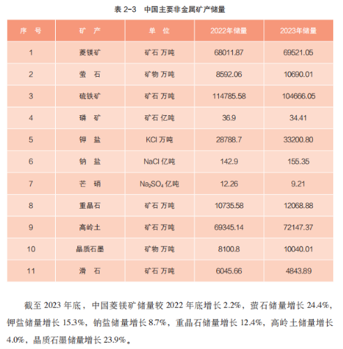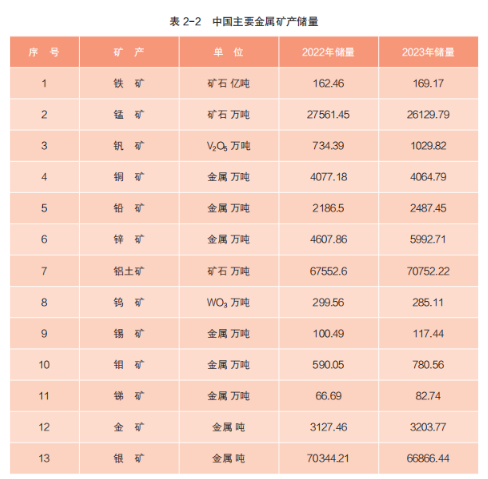 《报告》显示,截至2023年底,全国已发现173种矿产,其中能源矿产13种、金属矿产59种、非金属矿产95种、水气矿产6种。2023年,我国油气勘查在塔里木、准噶尔、渤海湾等大型含油气盆地的新层系、新类型和新区带获得重大突破,非油气矿产勘查中煤、铜、金、锂、磷等取得重大进展。