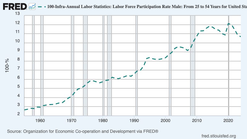 So if you think about men without a college degree, for example, their wages are no higher today than they were in 1979. That’s almost half a century of stagnant wages for most men without a college degree… You’re seeing this disconnection from family life. You’re seeing stagnant wages. Men who are born into lower income families, they are worse off on most measures than men who were born just 15 years earlier into those families. So we’re seeing a declining economic social and family trajectory for men who are working class or towards the bottom of the economic distribution.