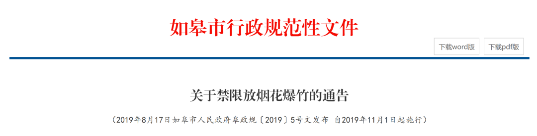 如皋早已出台明确的禁放规定,并持续多年广泛宣传、严格执行。