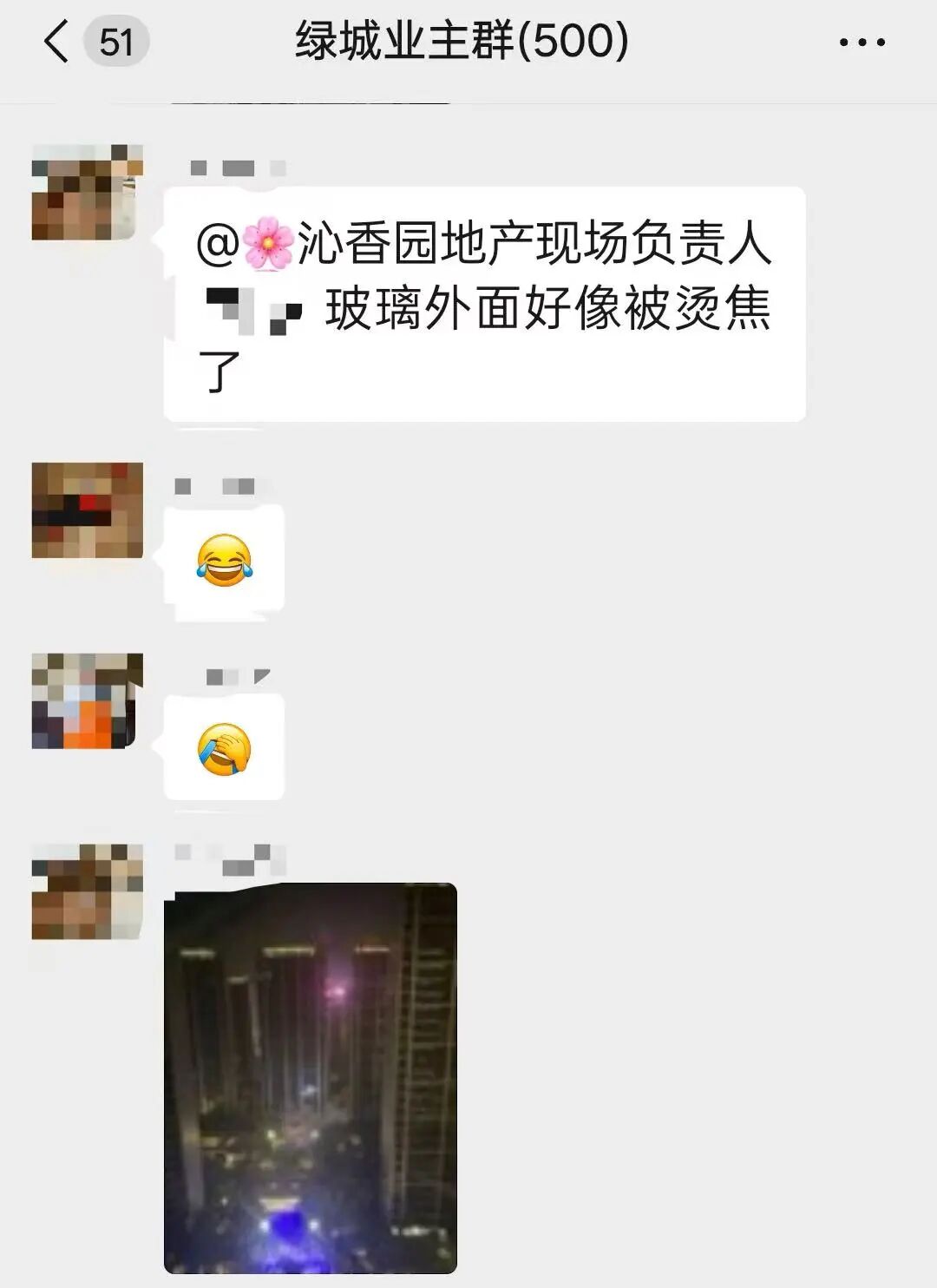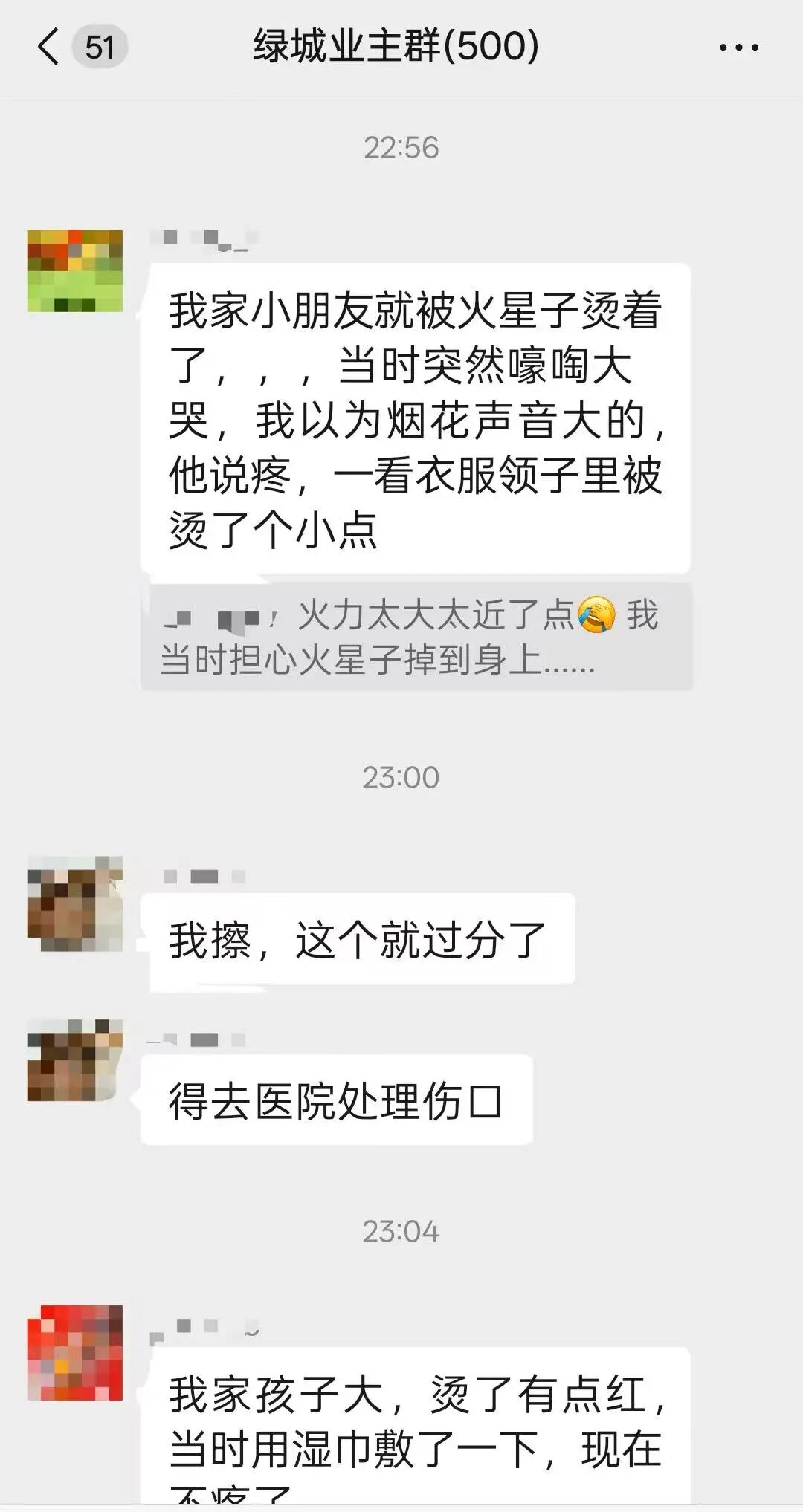 昨天有网友爆料,如皋绿城沁香园在“国庆中秋业主双节联谊晚会”上,大量燃放烟花爆竹,不仅炸到了小区的某些玻璃,甚至还有业主被烟花的火星烫伤。