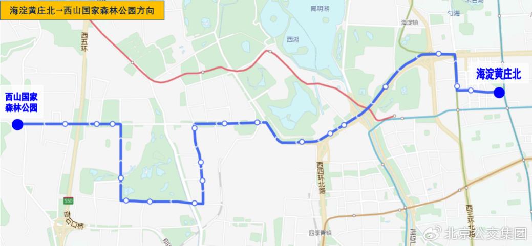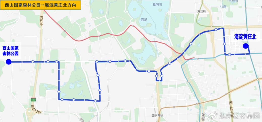 调整后首末站:西山国家森林公园-海淀黄庄北