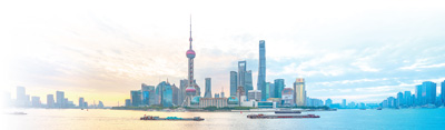 朝霞映照下的上海浦东新区。张明伟摄(影像中国)