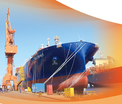 大连船舶重工集团正在建造的大型液化天然气(LNG)运输船。新华社记者 杨 青摄