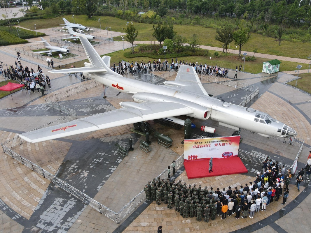 500余名高校学子在江西省南昌市军事主题公园,了解国防和军队建设发展成就(2020年9月19日摄,无人机照片)。新华社发(郭冬明 摄)
