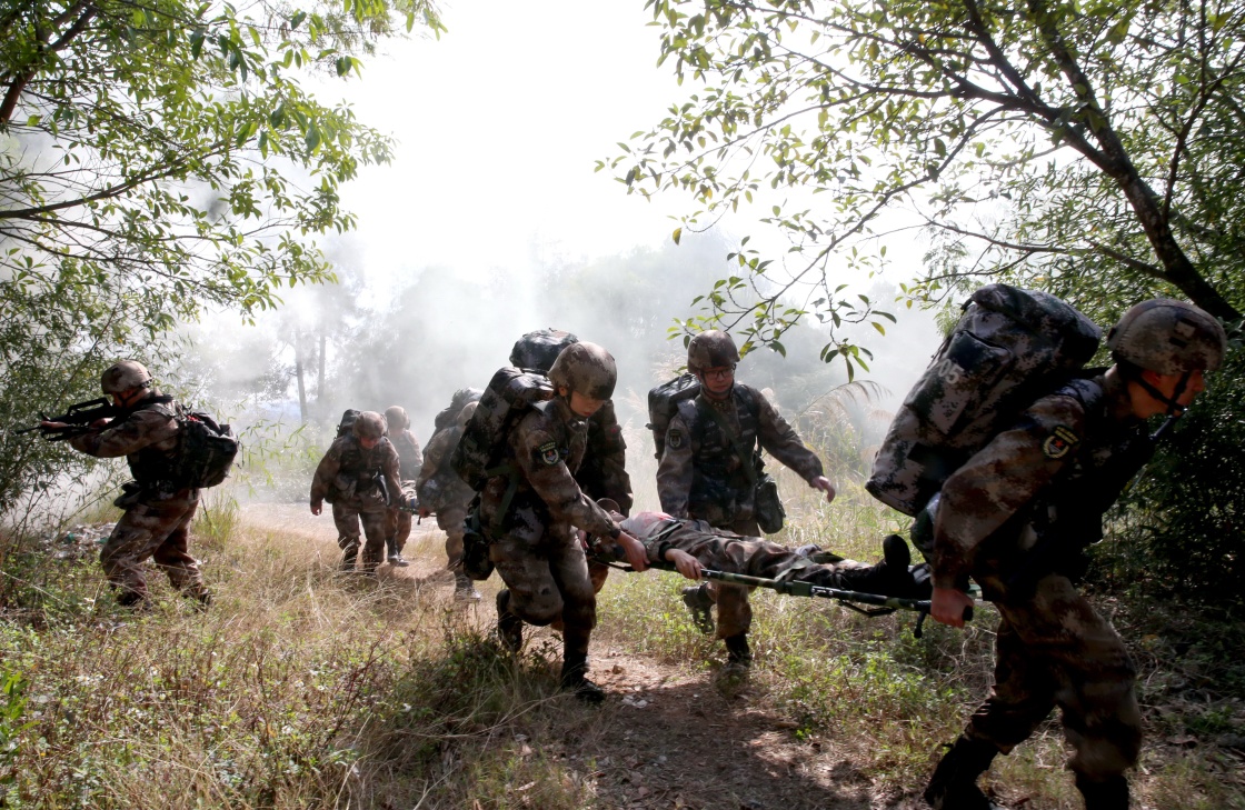 2022年1月4日,无锡联勤保障中心第910医院将野战医疗队拉到闽南某山区,在陌生地域开展实战化卫勤训练。新华社发(巴涛 摄)