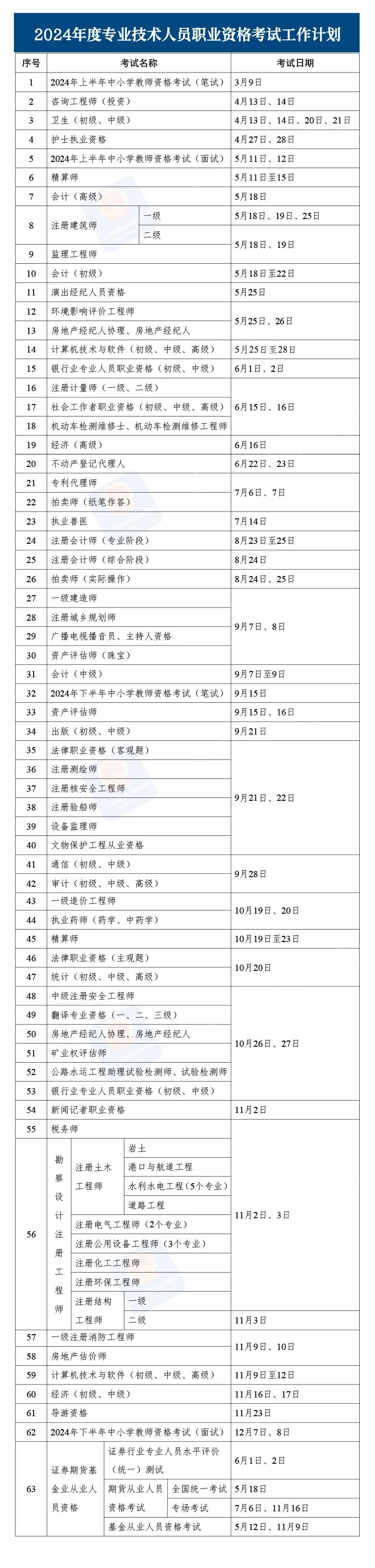收好!2024年度专业技术人员职业资格考试时间表定了