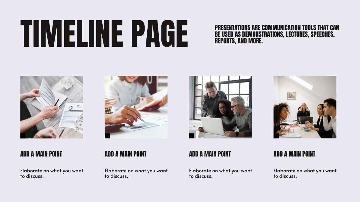 Create professional pitch decks for your business with this template. Adapt it to your brand just by changing the color and adding your own photos. Impress your potential investors with this corporate and modern design.