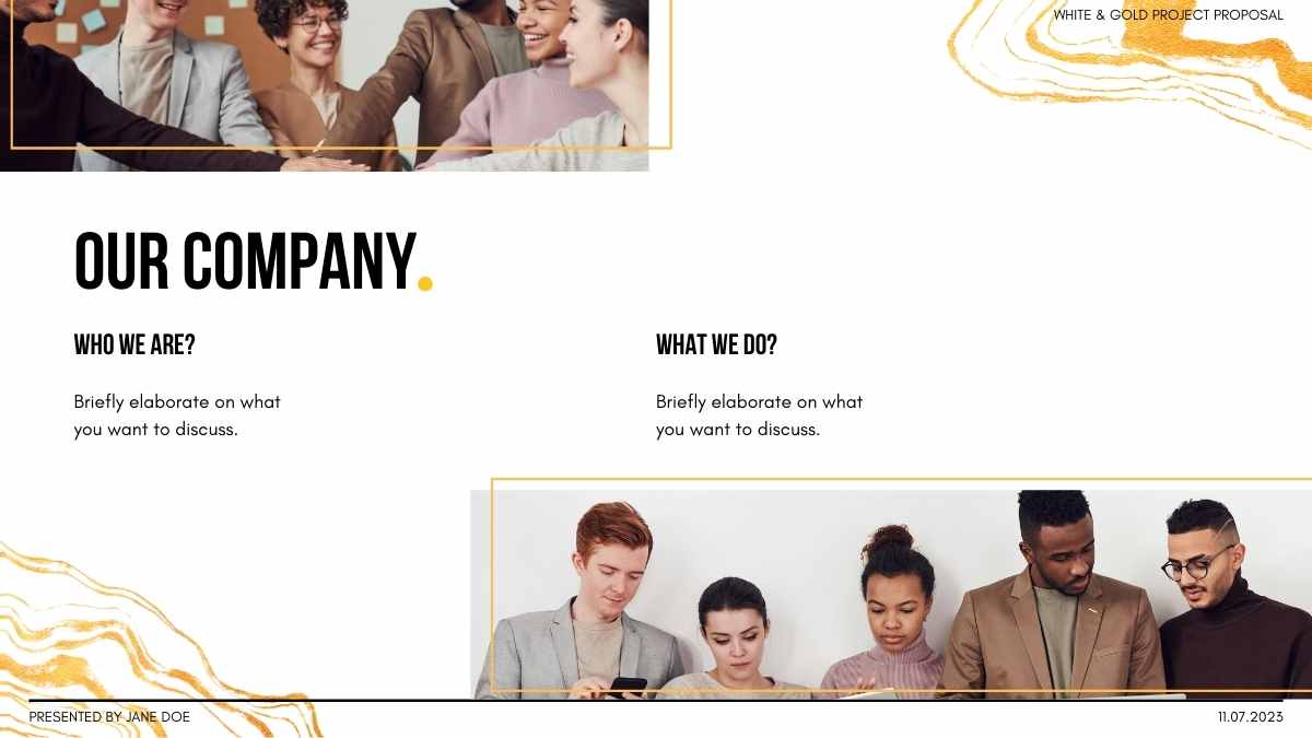 Elevate your presentations with the White & Gold Project Proposal — a free formal PowerPoint template designed for a polished and professional look. Featuring subtle gold accents, clean layouts, and modern typography, this template is perfect for business proposals, company profiles, or client pitches. The minimalistic design ensures that your content remains clear and easy to follow, while the gold accents add a touch of elegance and sophistication. If you’re aiming to leave a strong and professional impression in 2025, this template is definitely a must-have.