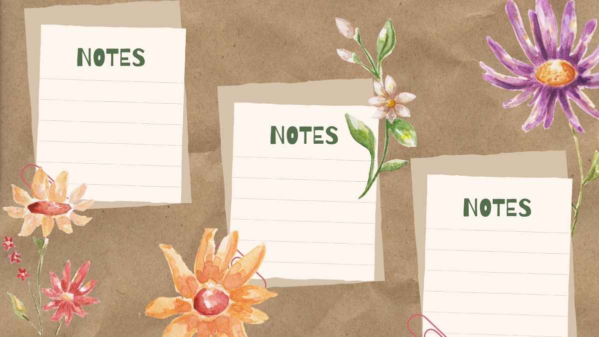 This scrapbook-style PowerPoint template features a nature-inspired design with hand-drawn elements, perfect for creative journaling or educational use.