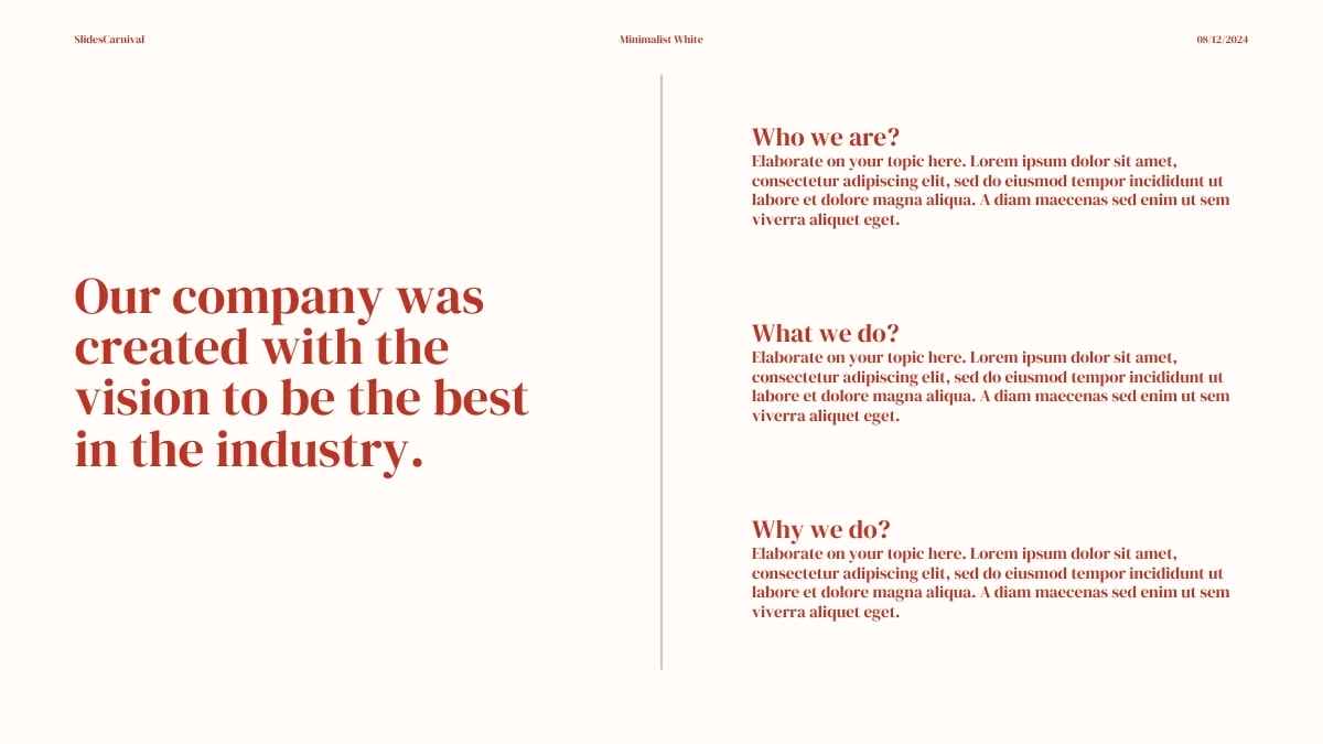 This is a minimal and modern template for your presentations, designed for business and corporate content. Enjoy the quality of a premium template but completely free, and present your project like a pro.