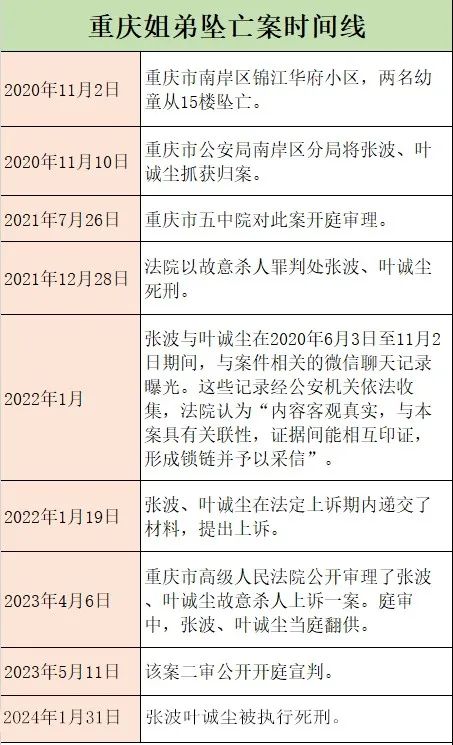 近日,最高人民法院对被告人张波、叶诚尘故意杀人死刑复核一案依法作出裁定,核准张波、叶诚尘死刑。2024年1月31日上午,重庆市第五中级人民法院遵照最高人民法院下达的执行死刑命令,对张波、叶诚尘执行了死刑。