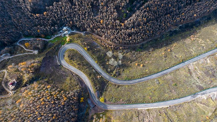 10月26日在位于宁夏固原市隆德县的宁夏六盘山红军长征景区拍摄的秋景(无人机照片)。连日阴雨天气过后,宁夏固原市隆德县六盘山区迎来晴好天气。连日阴雨天气过后,宁夏固原市隆德县六盘山区迎来晴好天气。