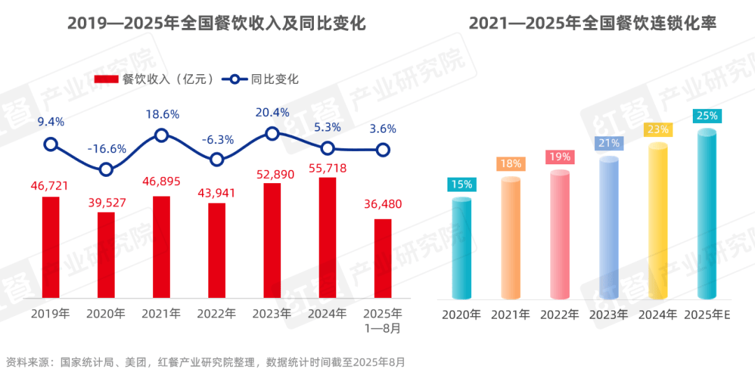 餐饮供应链日益完善,企业的角色正从支持者转变为驱动者据国家统计局数据,2024年全国餐饮收入近5.6万亿元,同比增长5.3%。2025年1—8月,全国餐饮收入超过3.6万亿元,同比增长3.6%,增速出现了明显放缓。