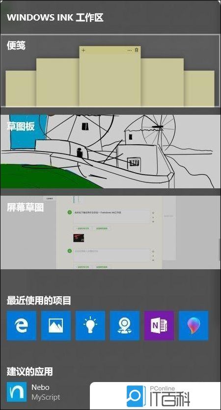 6、点击右下角任务栏的Windows lnk工作区图标,就可以找到便笺啦;