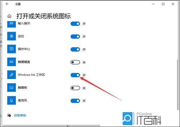 4、打开或关闭系统图标下,找到Windows lnk工作区,将其打开;