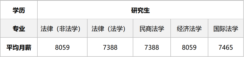 相关职业对学历和工作经验的要求,对法学类专业毕业生的薪酬影响较大。同时其就业集中性,导致在同一学历层次中,法学生毕业3年内的薪资无显著性差异。具体分学历来看,在学信网学职平台的调查中,毕业0-3年的专科生、本科生、研究生(含硕士和博士)平均薪资如下(表4、表5所示):