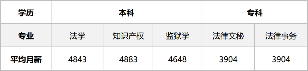 表4 法学类部分专业本科生、专科生毕业0-3年薪资情况