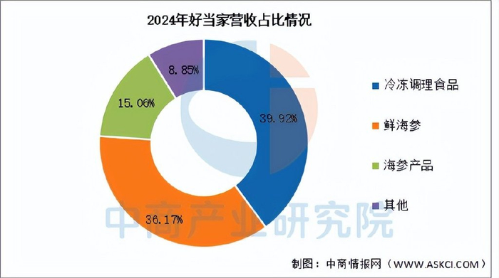 2025年前三季度实现营业收入9.36亿元,同比下降3.7%;实现归母净利润0.27亿元,同比下降10%。2024年主营产品包括冷冻调理食品、鲜海参、海参产品,营收分别占整体的39.92%、36.17%、15.06%。