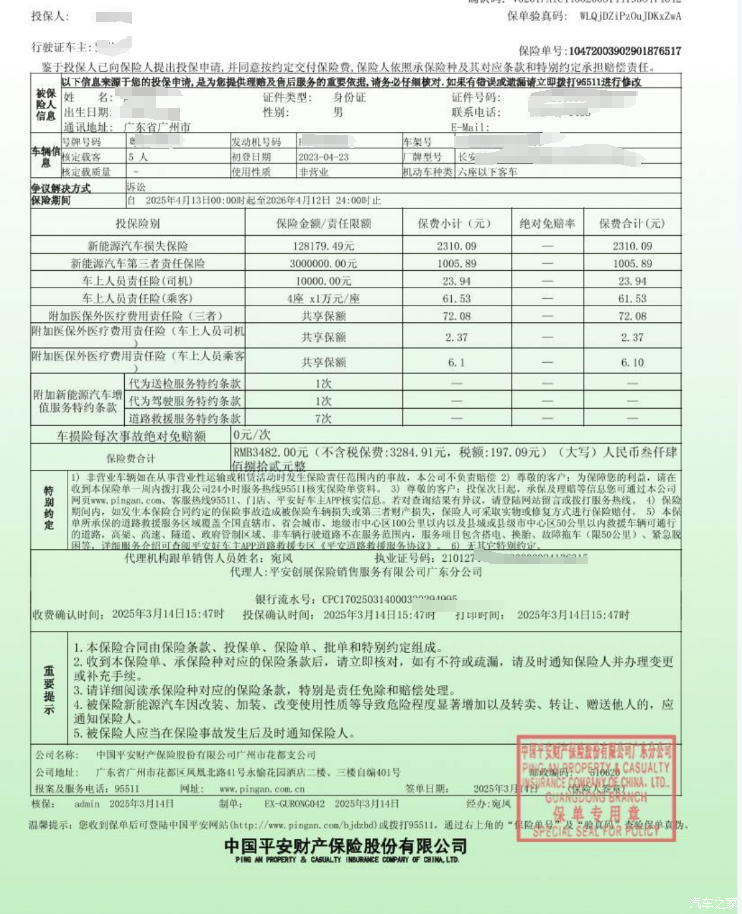 原本也考虑继续在人保续,但人保今年报价¥3400,对比下来,平安不仅报价低300,而且服务也更灵活,最终果断切换:
