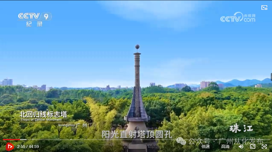 《珠江》开篇便聚焦北回归线“神奇回归绿带”的独特地理景观——在全球多为荒漠的北回归线上,中国境内却森林繁茂。从化北回归线标志塔,正是这一“绿带”上的重要坐标。