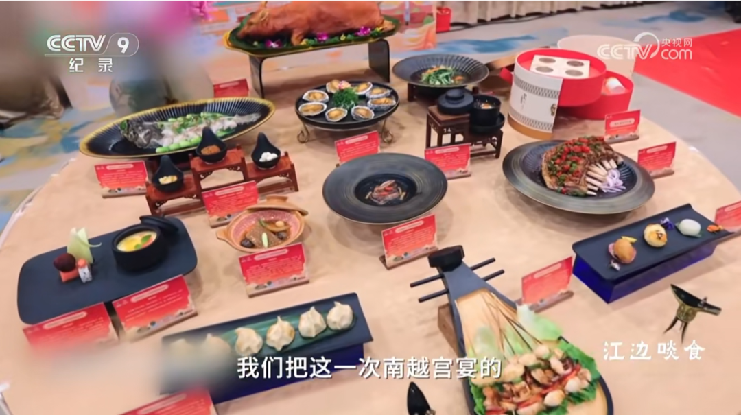 随着悠扬的古乐声响起,精致的南越宫宴菜品逐一展示,令人目不暇接,呈现了一场集美食、文化、历史于一体的盛宴,开启穿越千年的感官之旅。