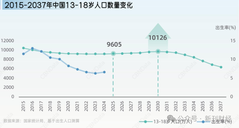 随着素质教育政策的推进和家长育儿观念的转变,青少年市场也正成为母婴行业的新增长点。CBNData数据显示,未来五年,13-18岁青少年人口数量稳中有升,预计至2030年将达到10126万人,叠加科技人才培育、综合素养提升和心理健康的重视,这一群体的消费潜力或将进一步释放。实际上,青少年专用洗护用品、祛痘产品以及兴趣圈层相关的IP联名商品,均已展现出强劲的增长势头。