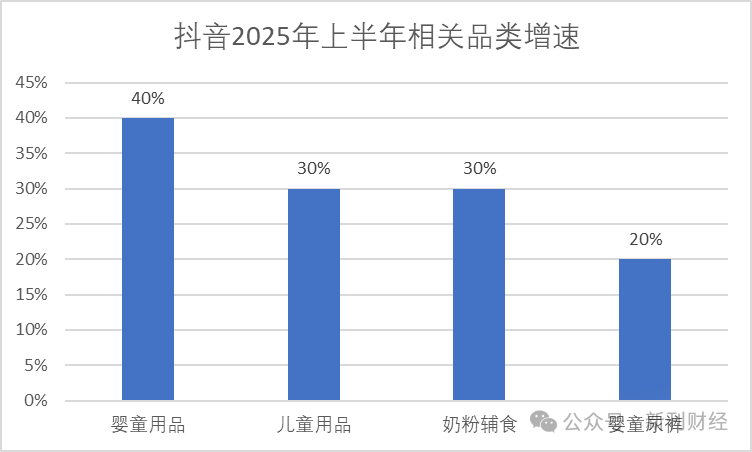 以抖音电商数据为例,2025年上半年,婴童用品、儿童用品和奶粉辅食的消费增速分别达到40%、30%和30%,印证了细分赛道的巨大潜力。