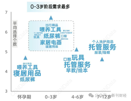 不同育儿阶段的消费需求呈现出鲜明差异,例如怀孕期家长更关注喂养工具、寝具用品和纸尿裤;0-3岁阶段,家居电器和纸尿裤需求旺盛;4-6岁阶段,玩具、托管服务和早教产品成为重点;而7-12岁阶段,服装鞋帽和个人洗护用品的重要性显著提升。这种分龄需求的分化,为品牌提供了精准切入市场的机会。