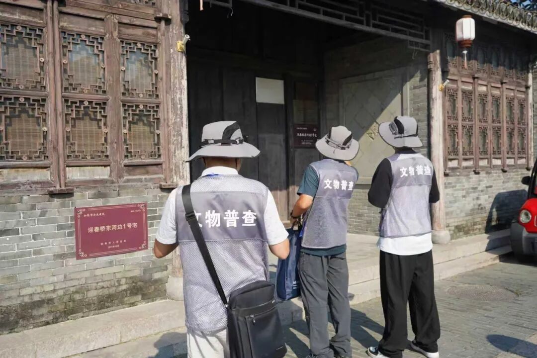 ▲普查队员对如皋市文物保护单位迎春桥东河边1号宅开展文物普查