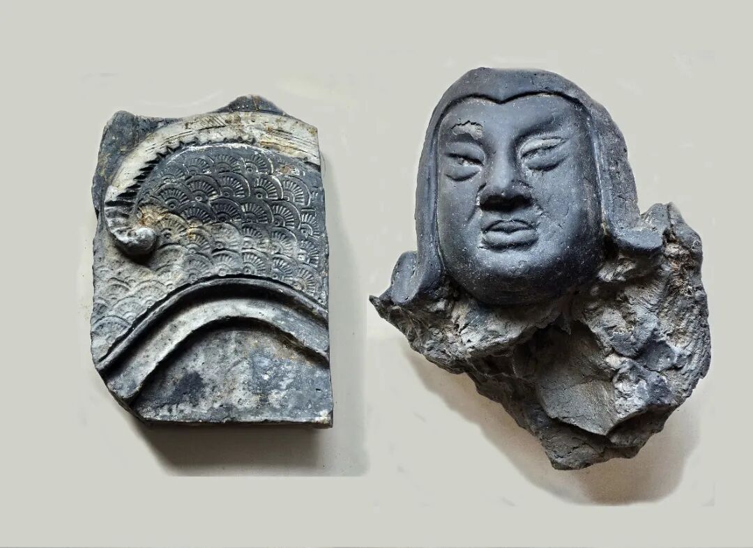 左图:掘港国清寺遗址出土文物构件(如东县博物馆提供);右图:掘港国清寺遗址出土文物构件“国清□”墨书碗(如东县博物馆提供)