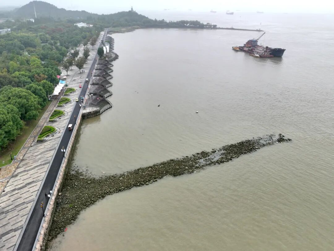 ▲南通长江江岸水楗桃园段二号水楗俯瞰图(拍摄者:韦峰)