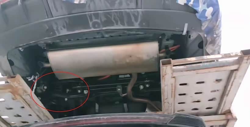 将底盘掀起来之后,我们能够明显看到它的一个电池护板,整体的底盘做的相对来说很平整的,不仅可以提升经济燃油性,也可以解决在行驶中一些空气绕流,还能在行驶的过程中保护底盘,以防小石子对于电池和底盘的磕碰等