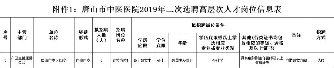 下载附件:1.《唐山市中医医院2019年二次选聘高层次人才岗位信息表》