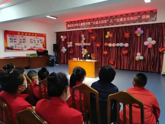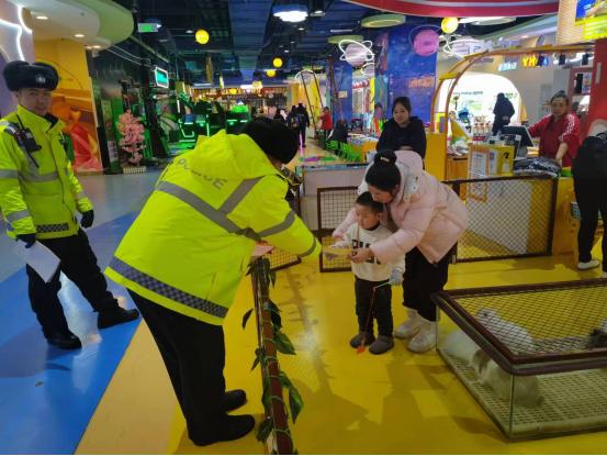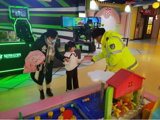 日前,四平市公安局交警支队铁东大队组织民警走进辖区商场淘气堡、游乐场,开展未成年人交通安全宣传活动。