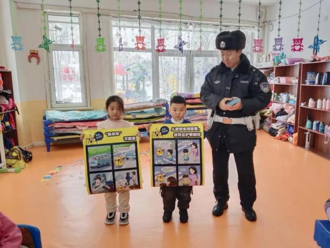 1月31日,长白山公安局交警支队组织民警走进辖区幼儿园,开展假期未成年人交通安全教育宣传活动。