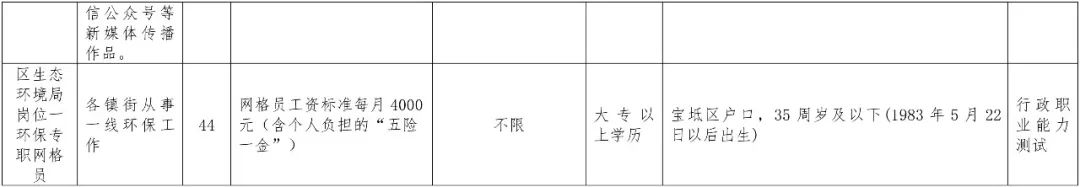 宝坻区因发展需要,面向符合职位要求的社会人员及2019年应届毕业生(不含现役军人)公开招聘63人。区生态环境局、区新闻中心公开招聘编外人员50人,天津市宝地旅游发展有限公司、天津冠城投资发展有限公司公开招聘国有企业工作人员13人,具体岗位及要求如下: