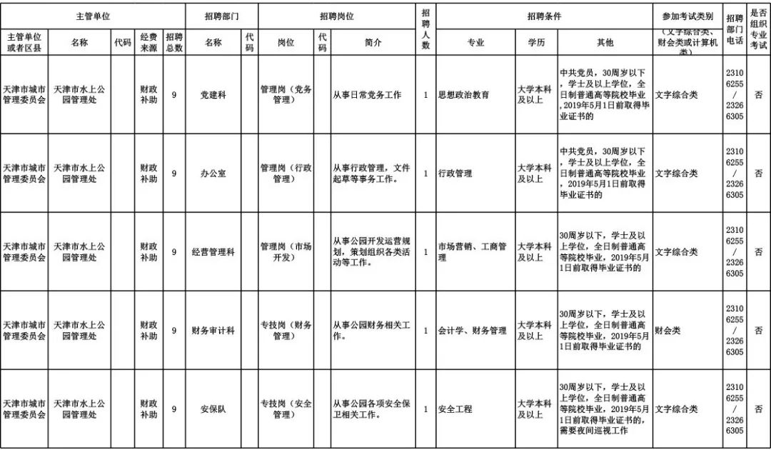 2019年5月16日至5月24日,在天津市人才服务中心网()和天津市城市管理委员会()发布招聘信息,考务工作委托天津市人才服务中心负责。