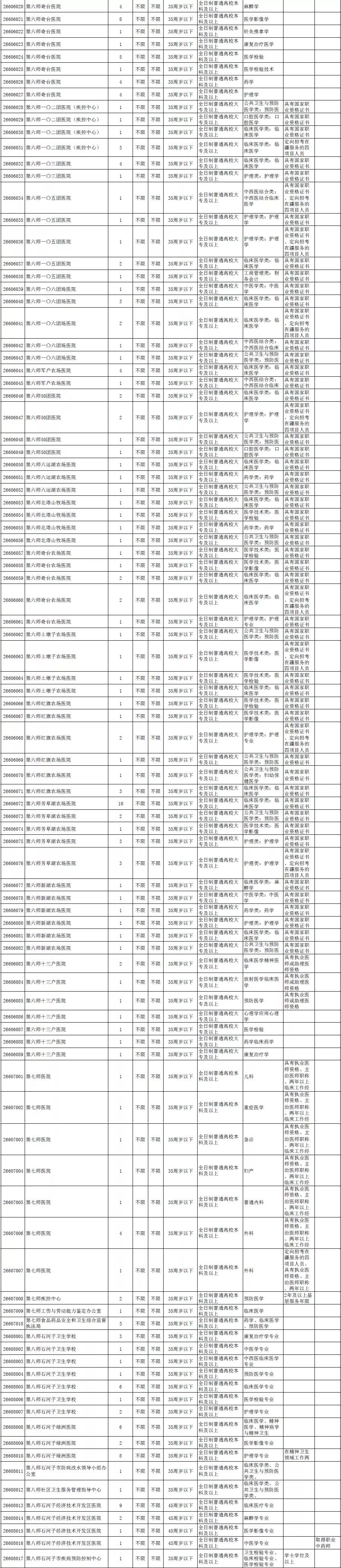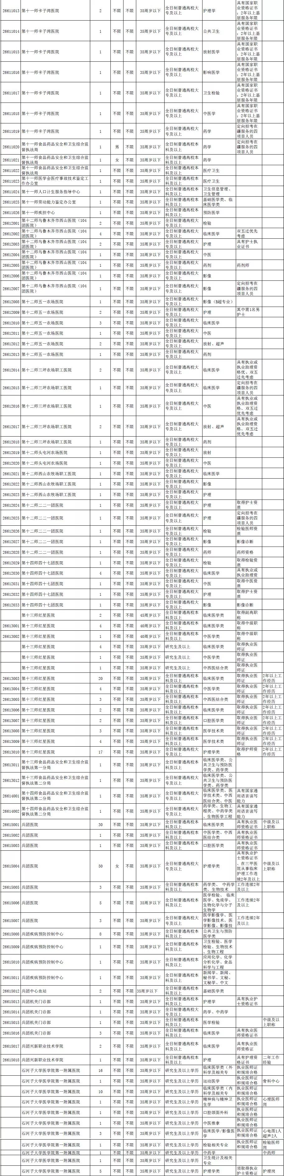 5.医护岗位要求全日制大专及以上学历,临床医学专业或护理专业。其他岗位要求大专以上学历,退役士兵学历可放宽到高中以上学历。