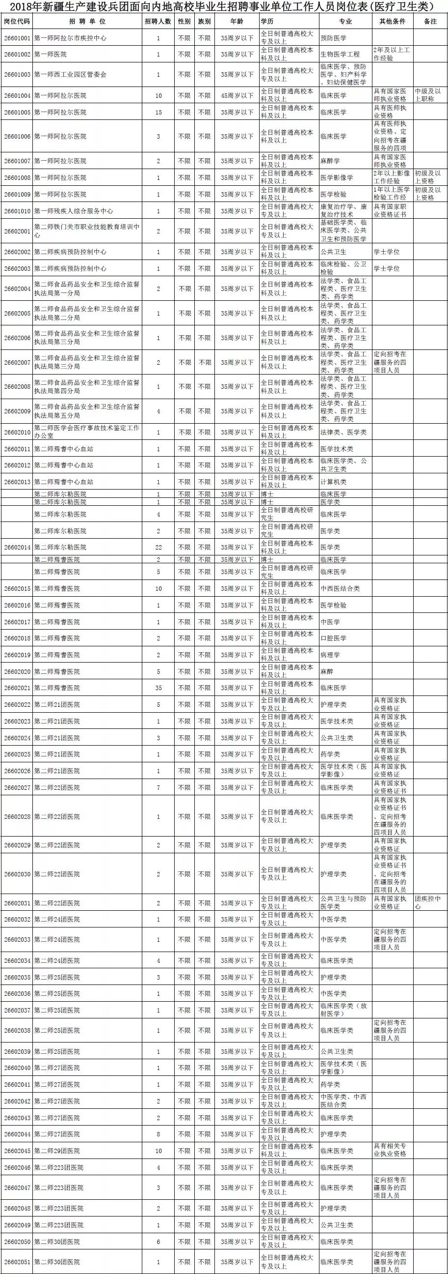 6.新疆生产建设兵团面向内地高校毕业生招聘事业单位工作人员4017名