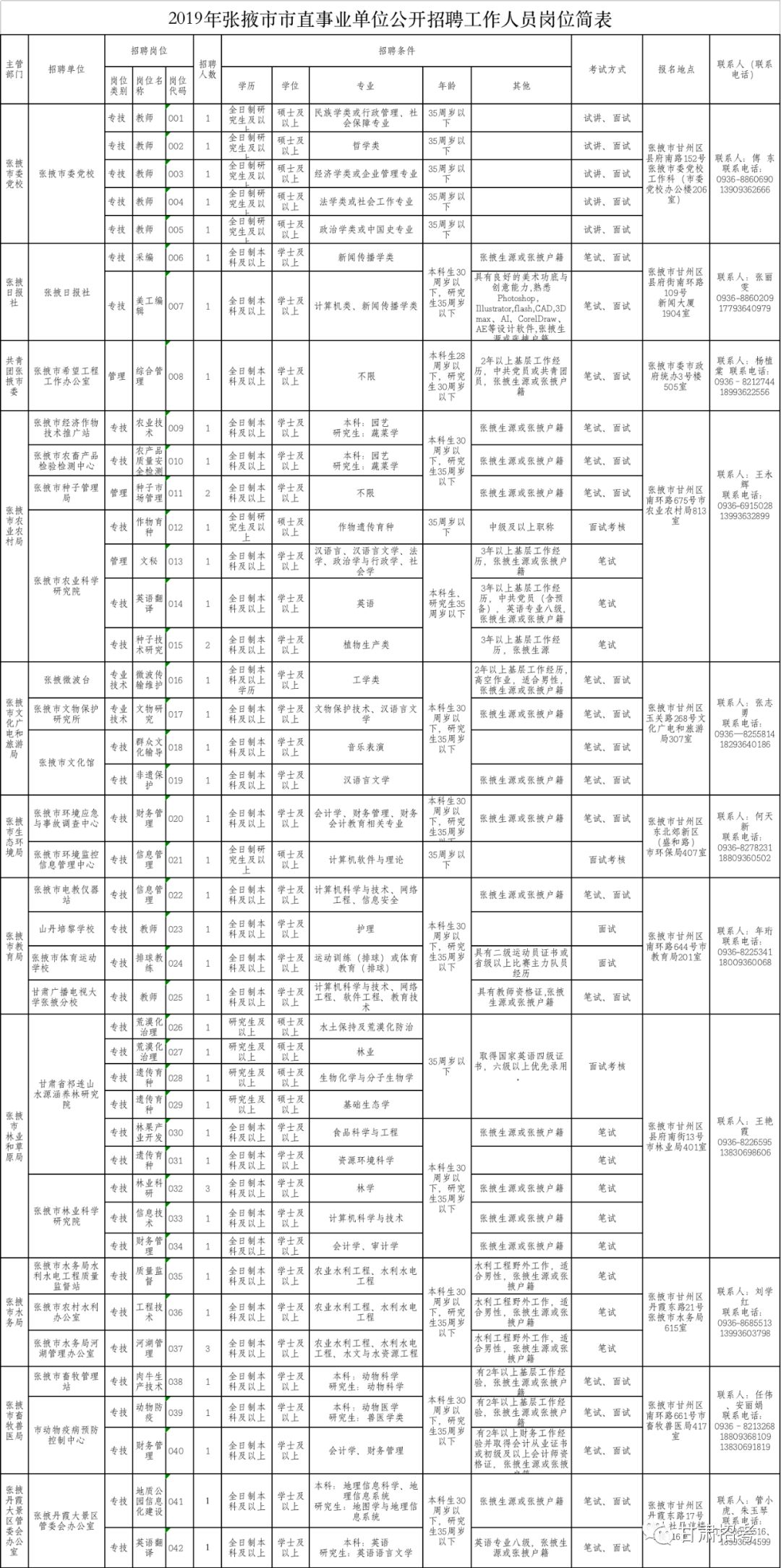 招聘单位、岗位和名额详见附表《2019年张掖市市直事业单位公开招聘工作人员岗位简表》(以下简称岗位简表)。