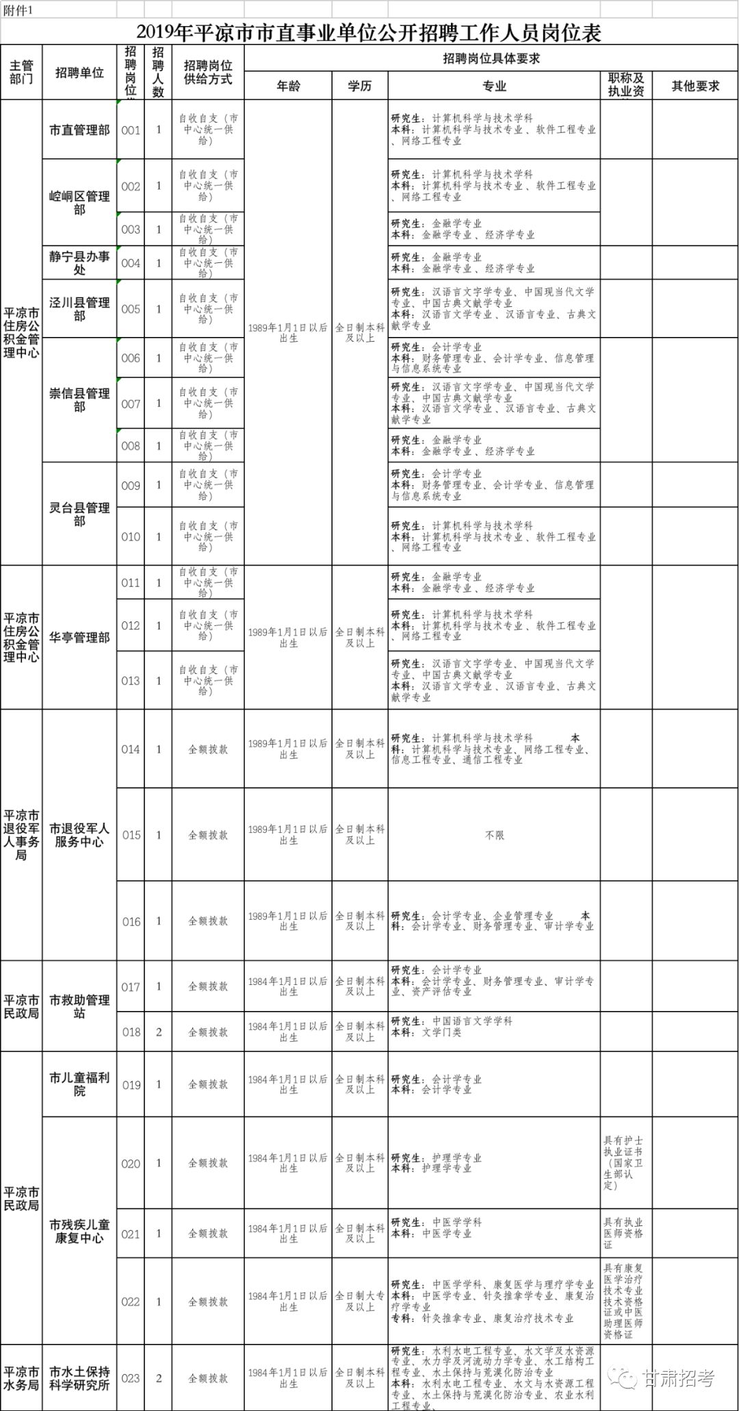 6.具备岗位要求的其他条件。详见《2019年平凉市市直事业单位公开招聘工作人员岗位表》(附件1)。