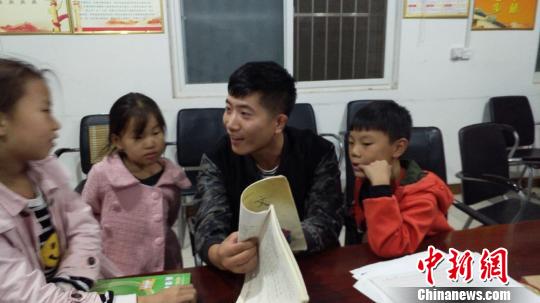 上苑村驻村队员帮村里的孩子辅导功课。赵海洋供图