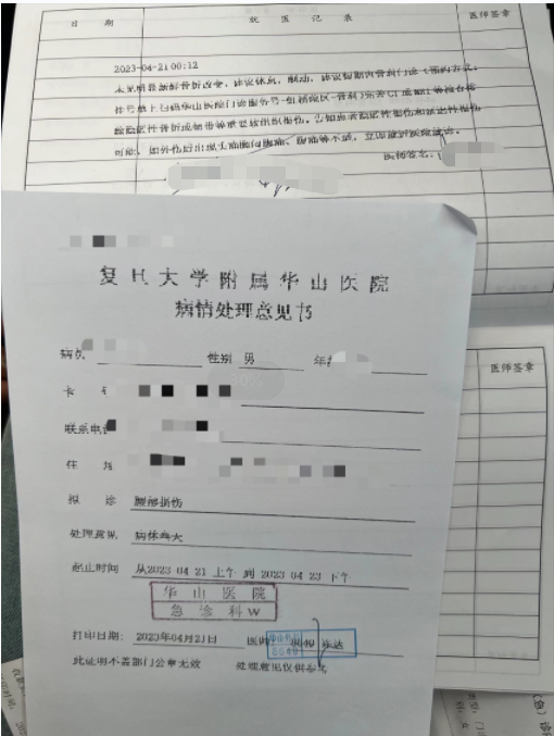 “Tongtong”表示,自己和朋友身体均出现疼痛状况,离开派出所后,他们均前往复旦大学附属华山医院就诊。根据“Tongtong”提供的《病情处理意见书》显示,医院拟诊其朋友出现口唇部外伤、腰部损伤,她本人则出现了肩部损伤和心悸的情况。
